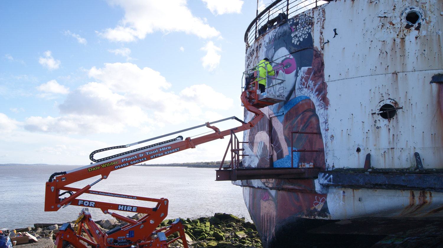 After a quick stop by Dusseldorf, Germany (covered), Fin DAC spent the last few days up north working on “The Duke Of Lancaster”, a ship that has been docked in the harbour since 1979 in North Wales.