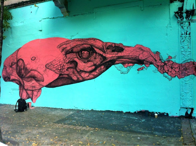 Since a few days, Juan Fernandez from La Pandilla has been hard at work on this new mural located somewhere on the streets of San Juan, Puerto Rico.