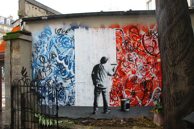 After a first piece on Wednesday (covered), Martin Whatson is keeping himself busy on the streets of Paris with this cheeky new mural.