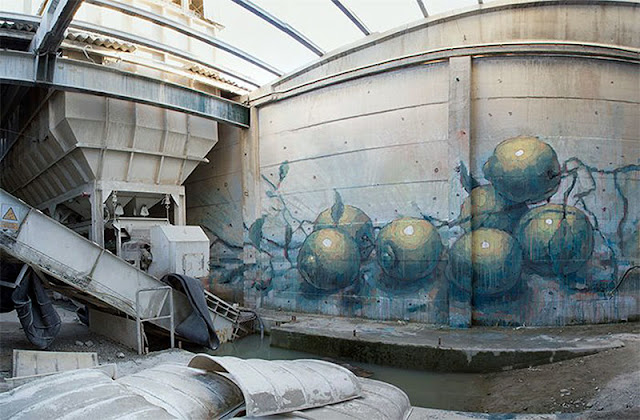 Different from what we are accustomed to seeing, the Spanish artist painted a still life of fruits and ss usual with Aryz, he used a wonderful choice of colour.