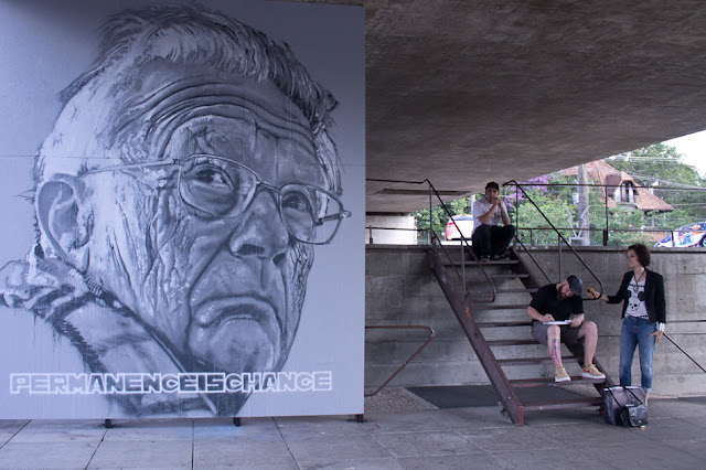 The German painter delivers once again one of his well-known greyscale portraits entitled “Permanence Is Change”. ecb has a true talent to diversify tones of grey and to compose them in a perfectionist way…