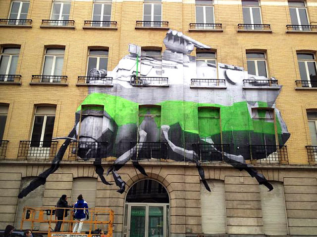 The Parisian artist merges nature with weaponry into freaky mutant bugs and if you are in the area, this one can be seen on Rue Nicolas Leblanc.