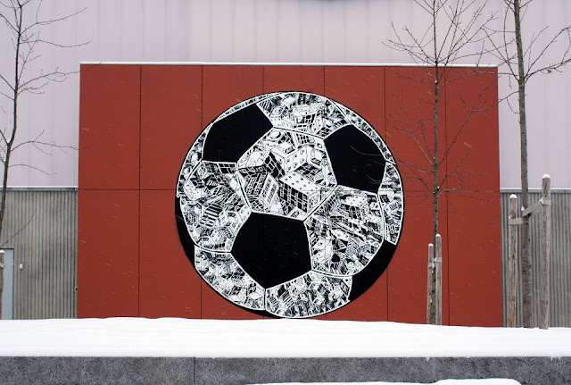 As always with the “Amateur Architect”, this new mural showing a soccer ball contains an immense amount of detail, patterns, and strong line work.