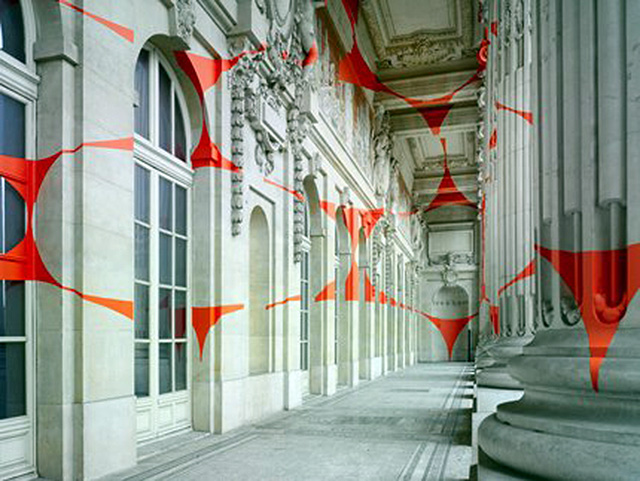 Felice Varini is known for his geometric perspective-localized paintings in rooms and other spaces, using projector-stencil techniques.