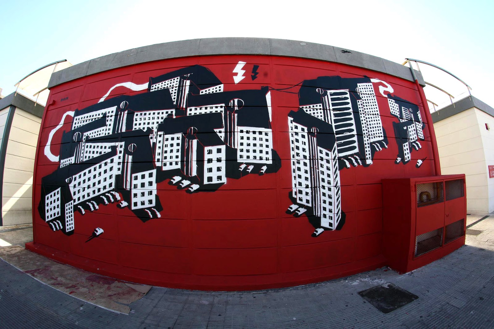 The artist and his crew just completed this large mural featuring his signature style on the streets of Valencia and as usual with the Polish artist, its looking very architectural.