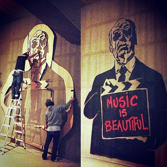 As usual with the Frenchmen, he dropped some large-scale stencils of Hitchcock sporting his trademark message “x is beautiful”.