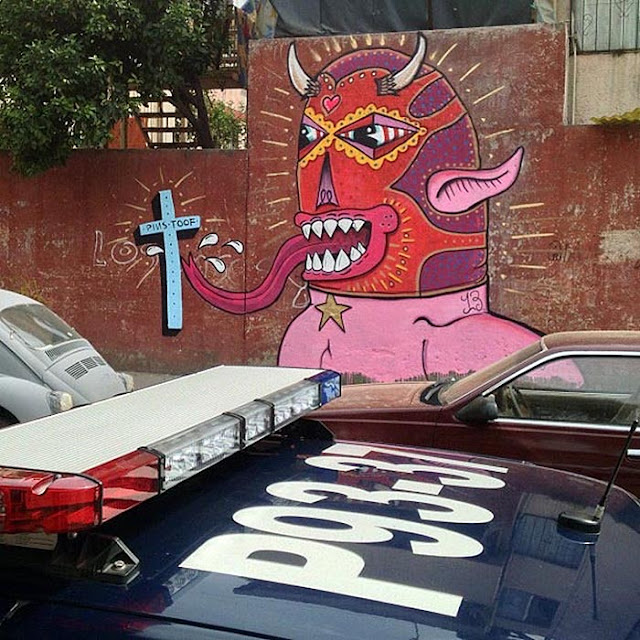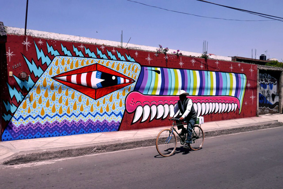 The British painters have been spending a few weeks in Mexico DF where they painted heaps of new colourful and playful murals around the city.