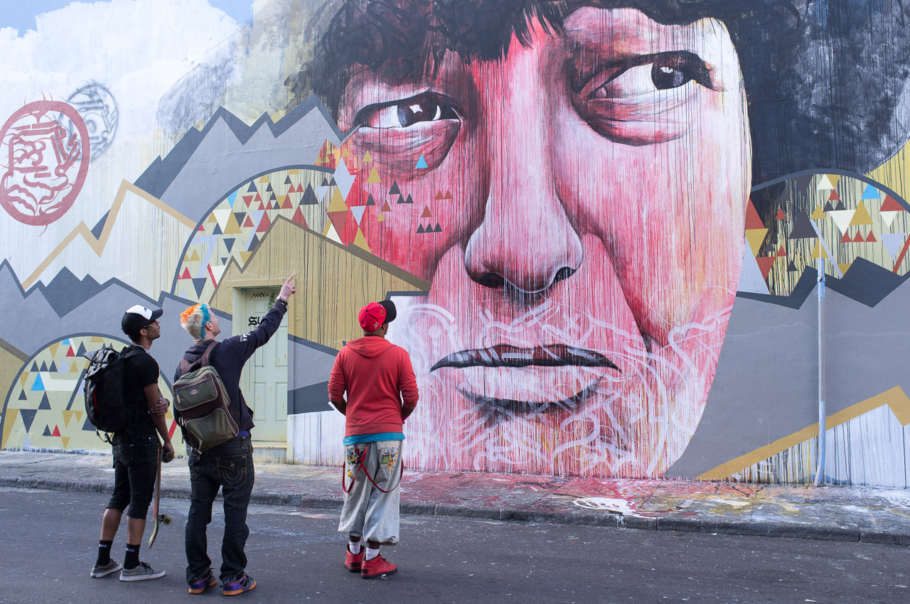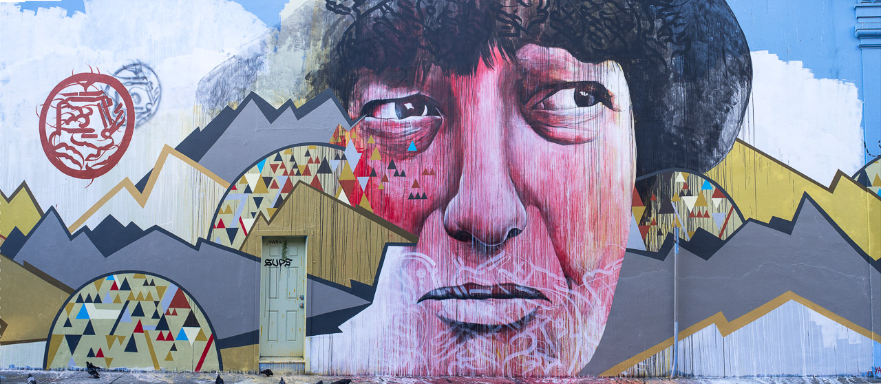 The image is taken from the photography of a local photographer called Tom Stone. It is an image of a local homeless woman who’s sad story was all to common in the Tenderloin, the painful, sad eyes of a part of society that most people pretend not to see but unfortunately in the Tenderloin it is all too apparent.