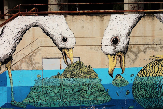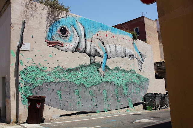 After a sweet collaboration with Blu in Spain (covered), Ericailcane has now landed in Italy where he just completed these new collaborations in Cagliari, the capital of the island of Sardinia, an Autonomous Region of Italy.