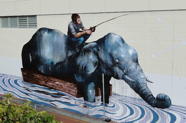 Commissioned by the Illawara performing arts centre, this Elephant and Fisherman piece is part of a larger collaboration with Trait, Sam Clouston and poet Lorin Reid.