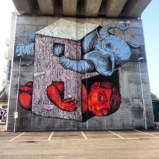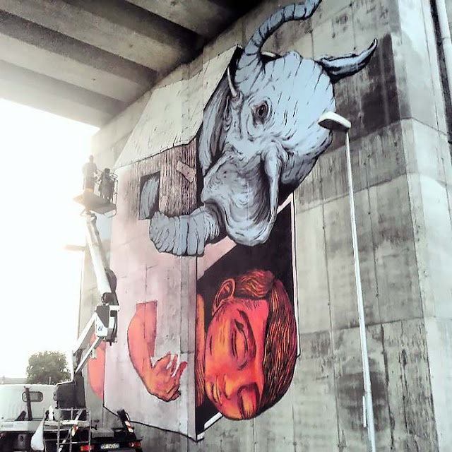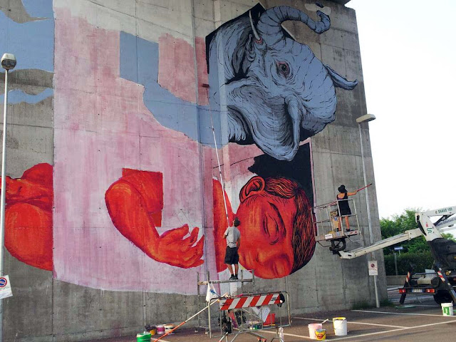 Earlier today, Ericailcane and Bastardilla completed this new piece in Camposanto, a commune in the Province of Modena in the Italian region Emilia-Romagna for the Icone Festival.