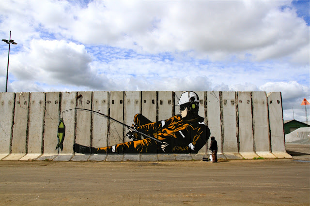 The Norwegian artist delivers some of his signature stencil works which can be found around the local port.