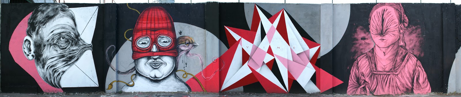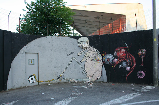 Last week-end was held Art On The Stadio, the first Graffiti and Street Art event in Varese, Italy where Centina, Seacreative, Kraser, Vine, James Kalinda and Nemo hooked up to work on a massive collaboration.