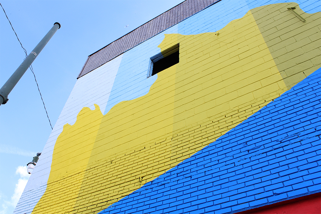 As usual with the South American artist, he painted a subtle and accomplished abstract piece. Elian explores 2D and 3D forms, colours and the potential for interaction through transparency.