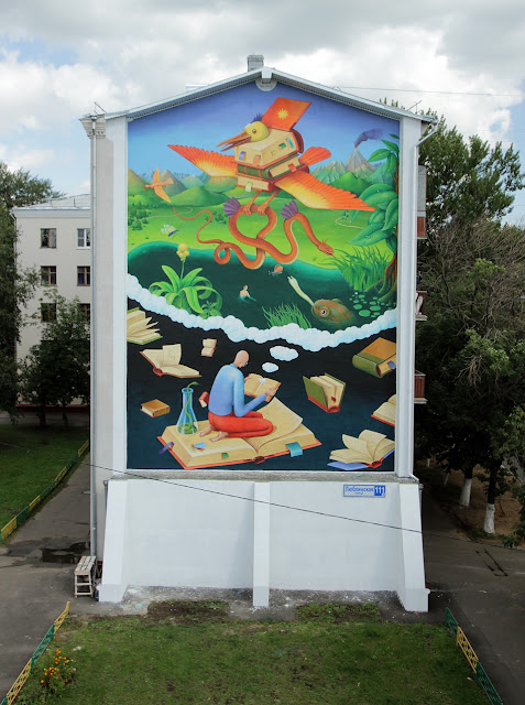 AEC and Waone from Interesni Kazki are both in Moscow, Russia where they worked on two separate walls for the LGZ Festival.