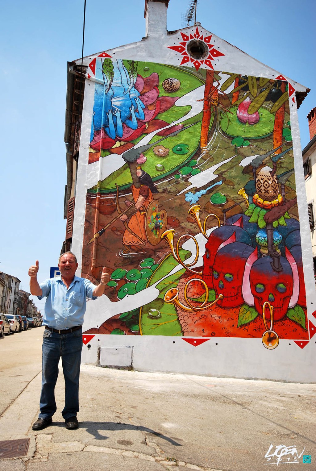 Liqen was recently in the Balkans where he worked on this amazing piece entitled “The Artquero Dream” for the Boombarstick Festival in Vodjnan, Croatia.