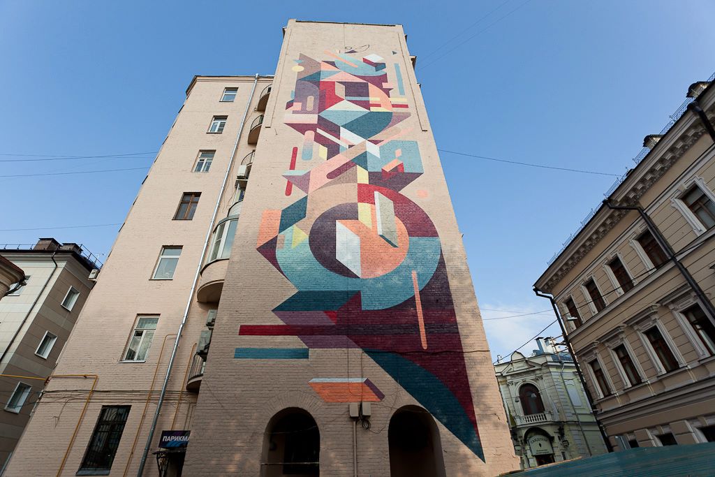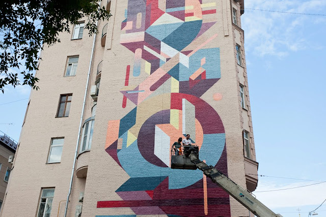 After a quick stop by Lodi, Italy (covered), Nelio is now in Russia where he spent the last week working on this 28 meters high mural in Moscow.