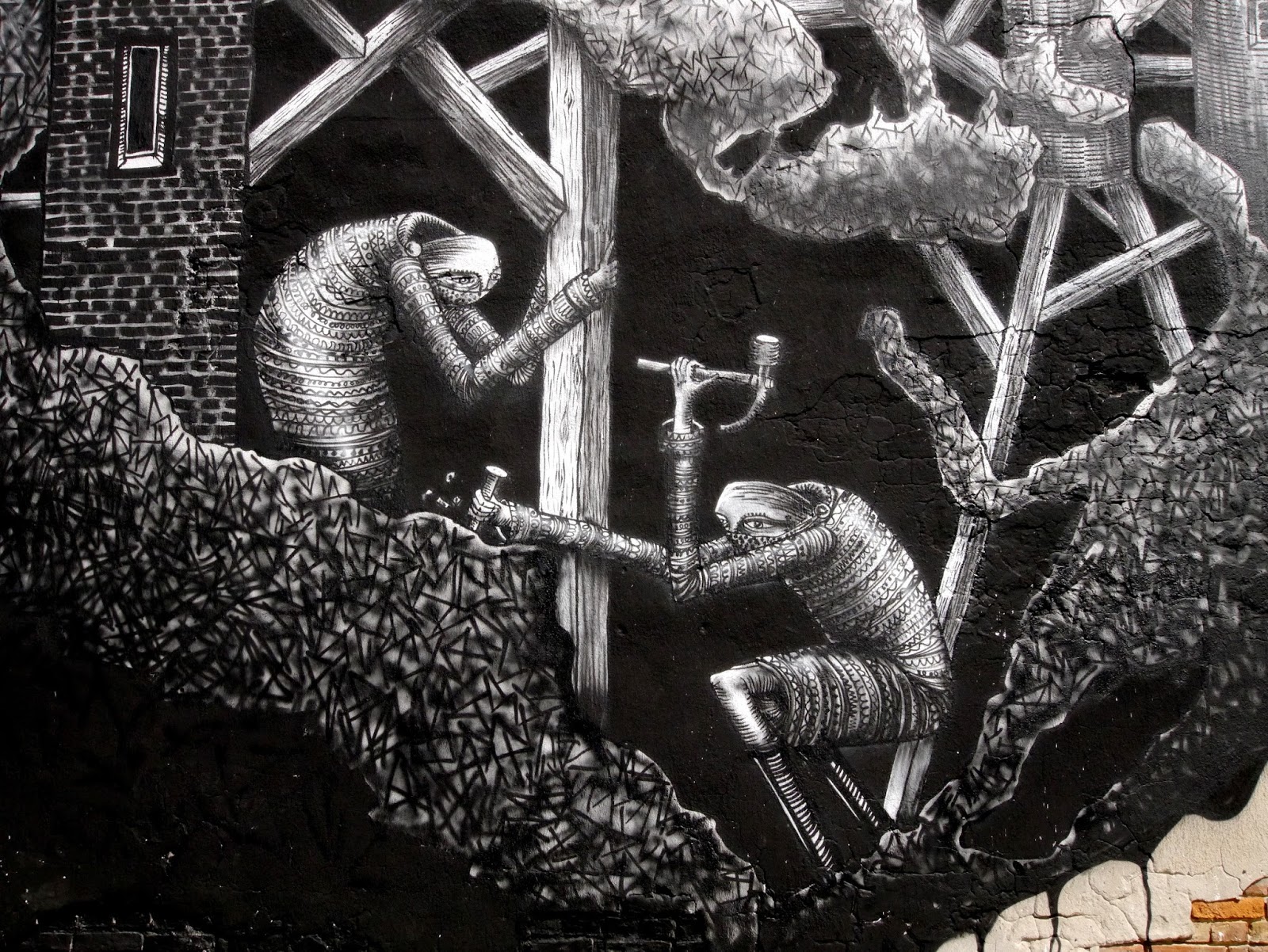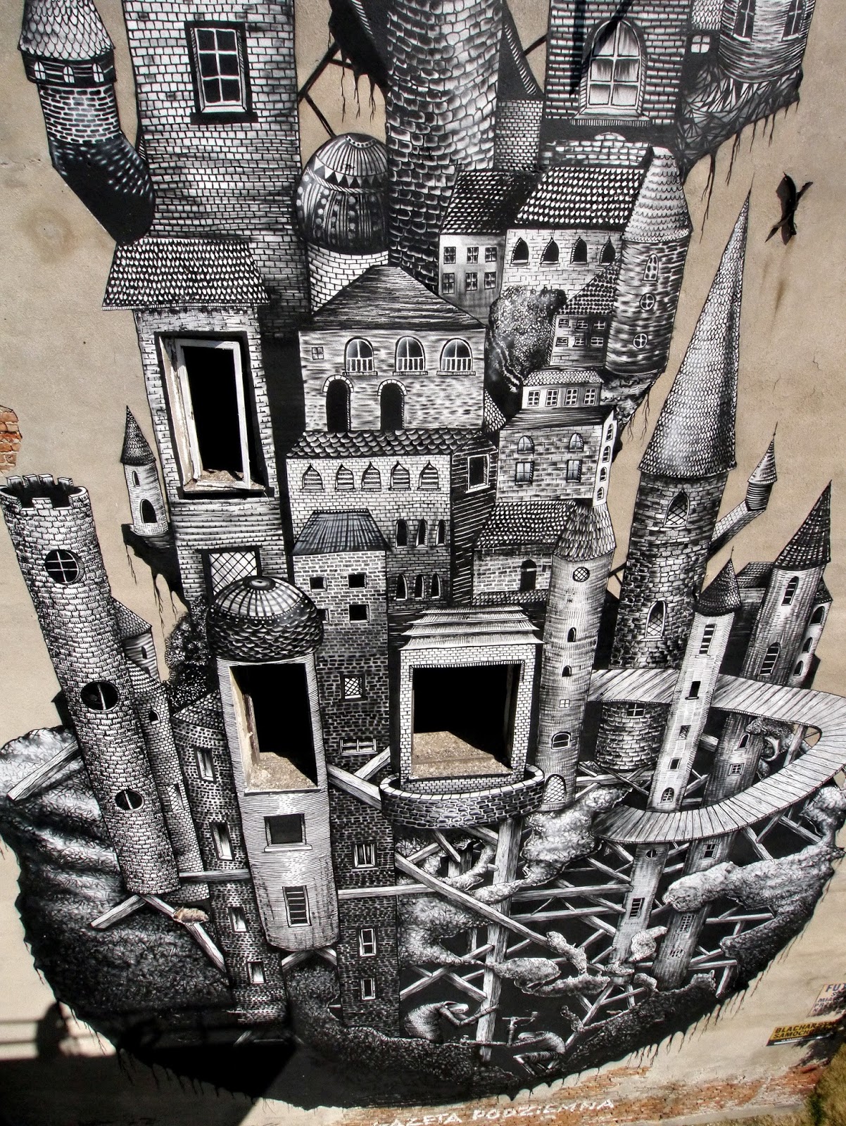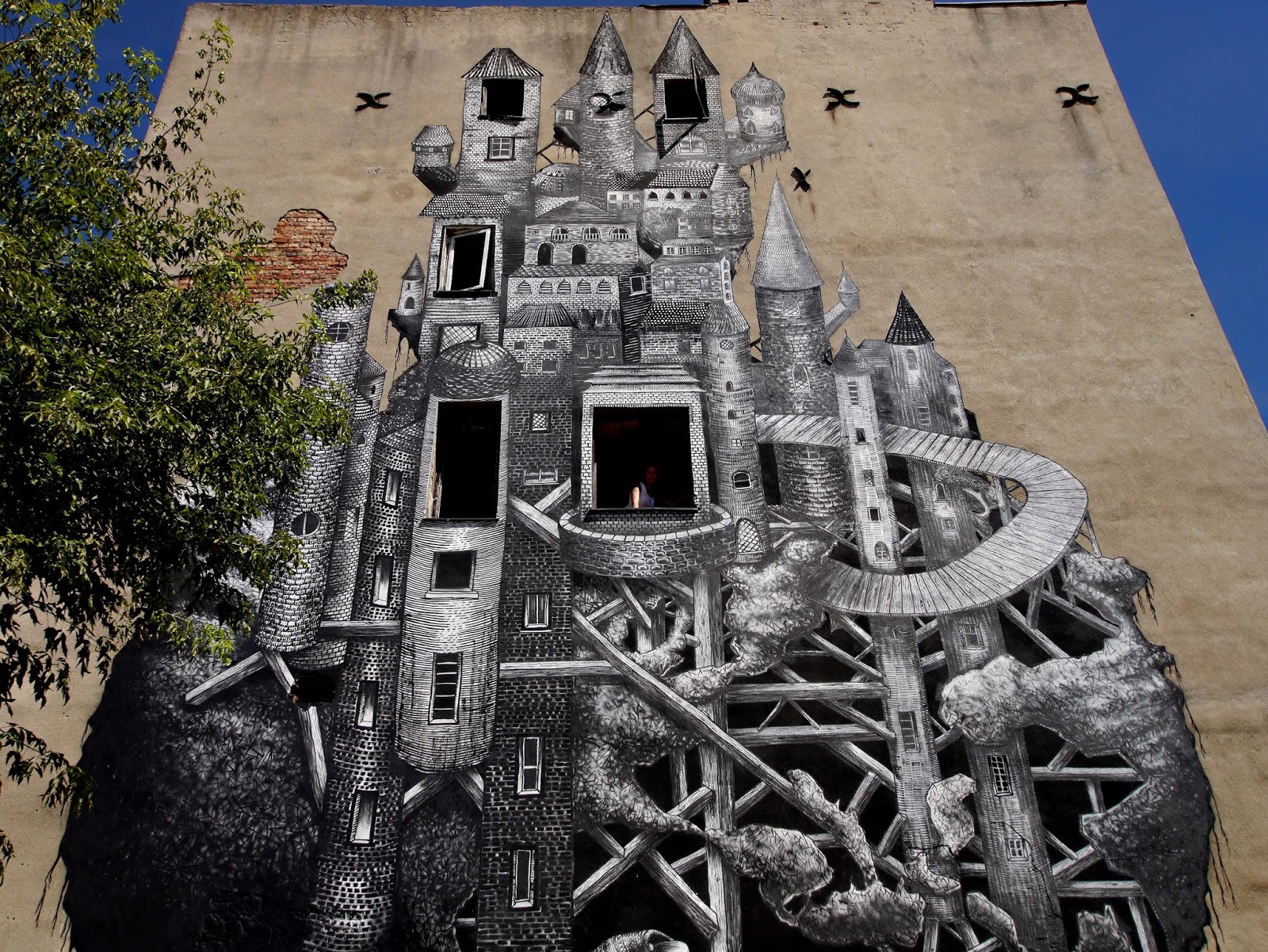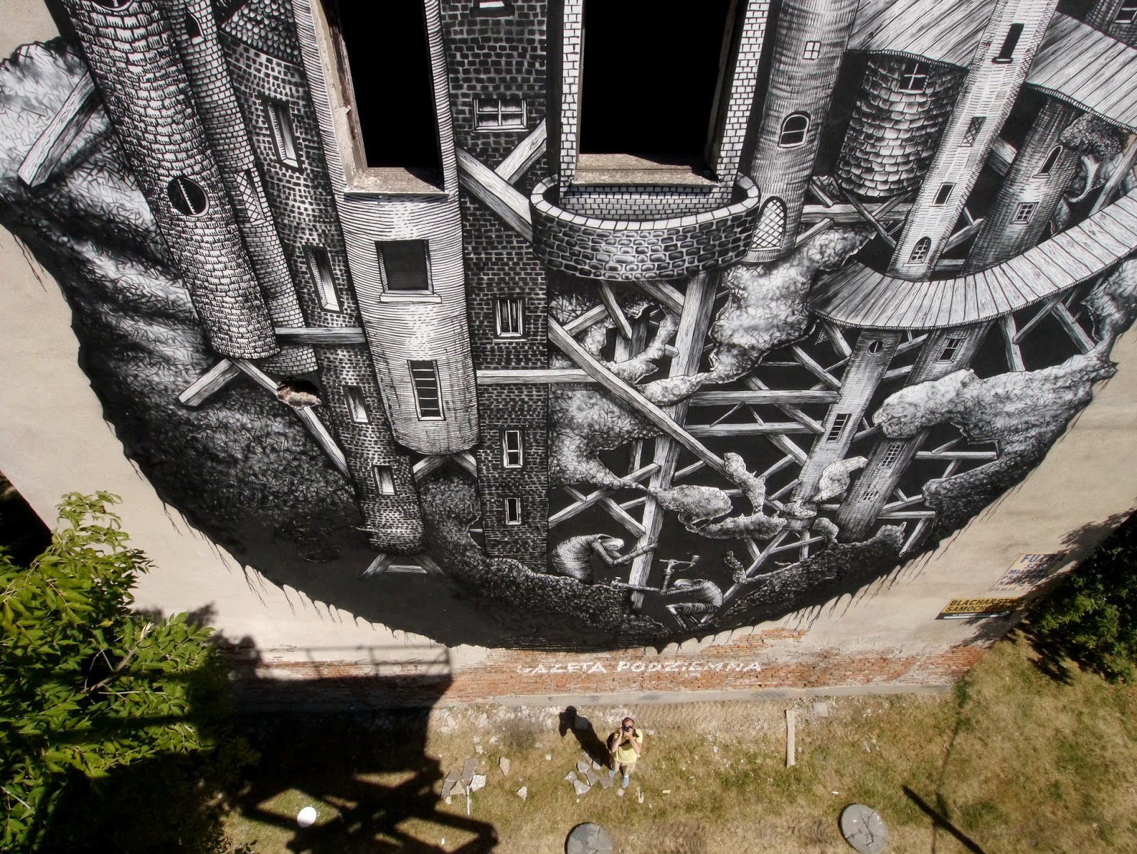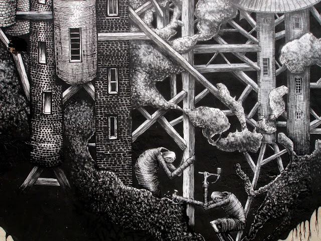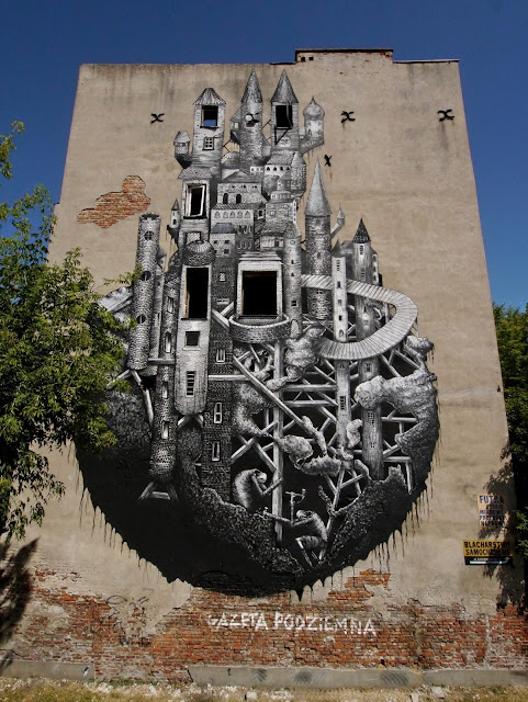 Invited by the Street Art Doping Festival in Poland, Phlegm just completed this new mural on the streets of Warsaw.