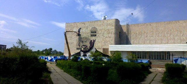 Russian collective ZukClub just sent us some pictures from their newest pieces in Krasnokamensk, Russia’s largest uranium mine and a city where almost all the residents are engaged in uranium extraction.