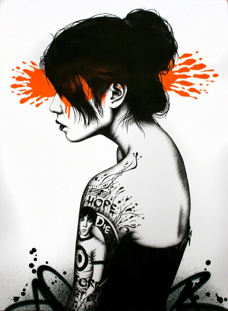 “Moonchild” comes in two colorways, princeton orange is 150€ in an edition of 50 and moon silver is 180€ in an edition of 25. Hand-pulled Screen-print with painted colour splash in acrylic, it measures 76 x 56cm and comes signed & numbered by the artist.
