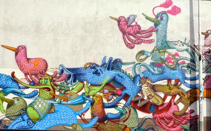 In town for the Kosmopolite Art Tour, the French street artist painted a series of his signature crazy characters for the local residents to enjoy.