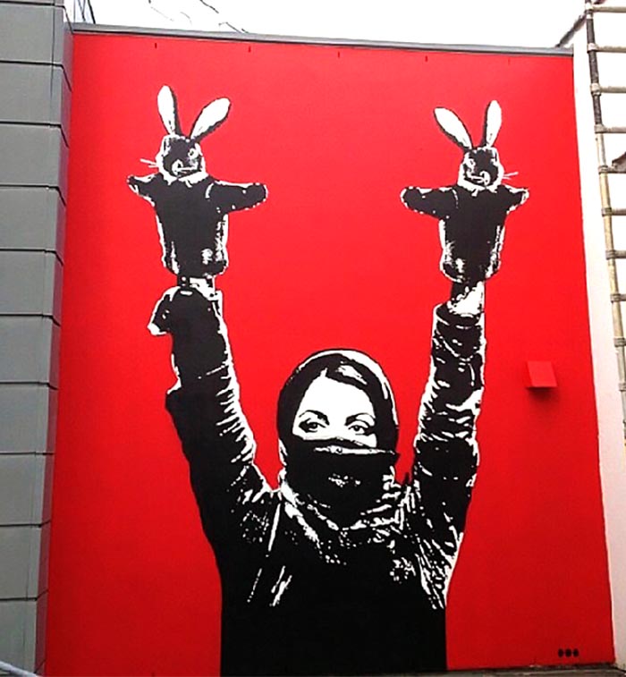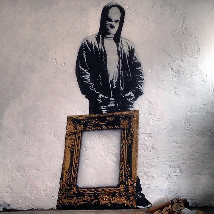 The Norwegian street artist stenciled this large-scale version of his signature “Protester” image which he released, earlier this year, as a screenprint. He also dropped another quick street piece for the local residents to enjoy.