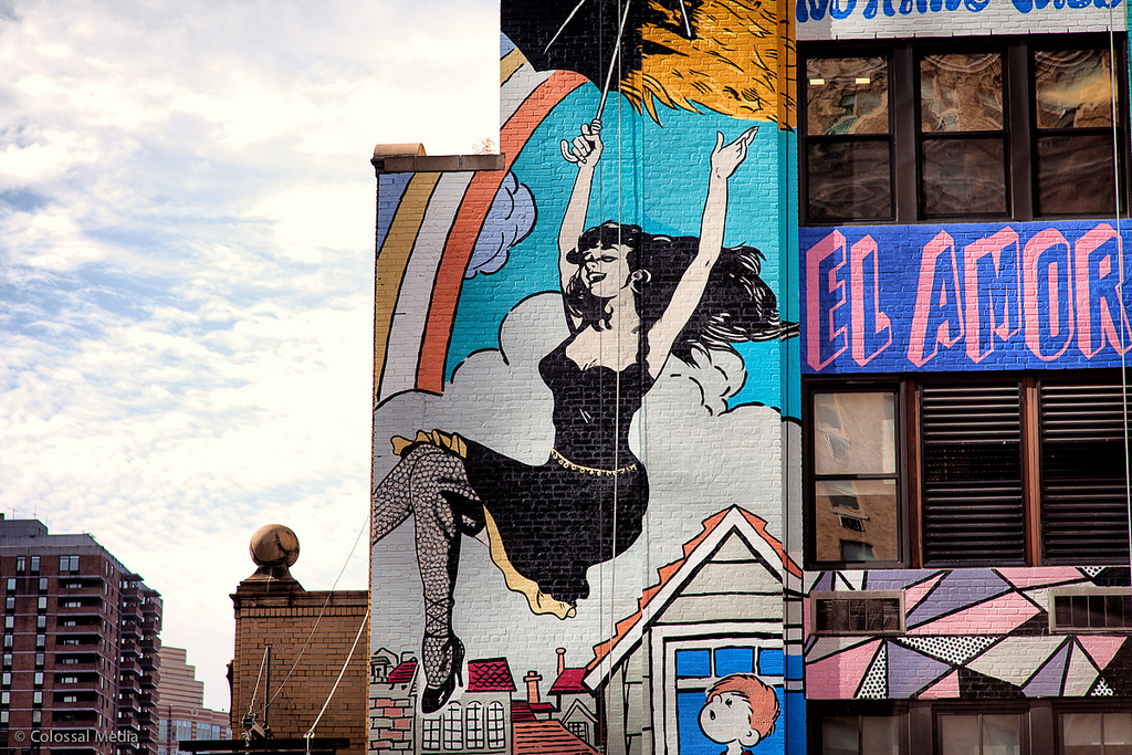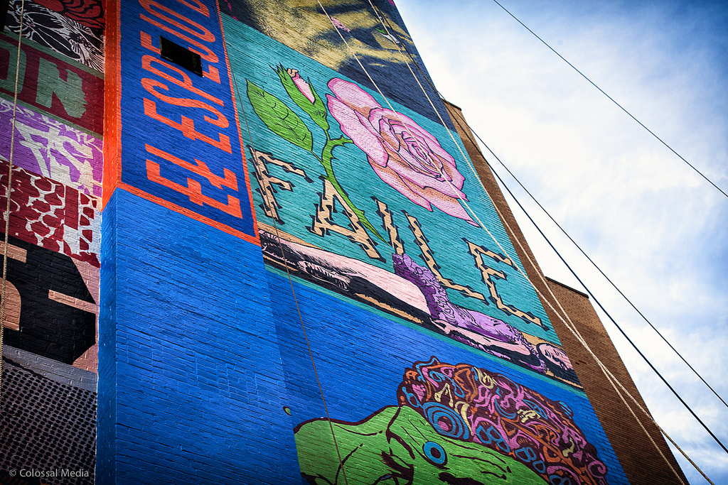 While this mural is composed by various iconic images from the Street Art duo, it was mostly painted by Colossal Media.