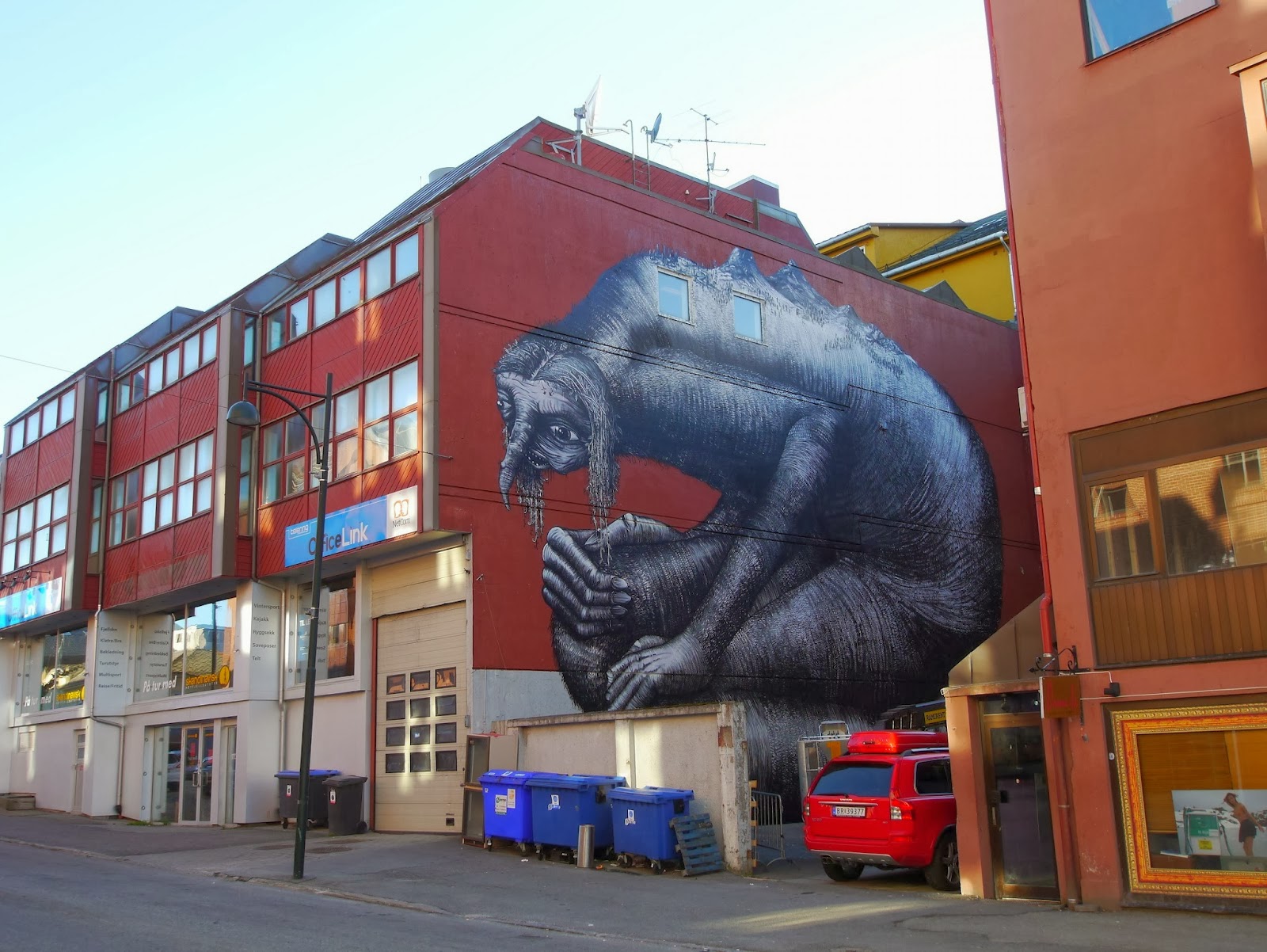 While we last heard from him painting around the United States, Phlegm is now back in Europe where he just wrapped up this life size mountain troll somewhere on the streets of Bodø, a city in Nordland county, Norway. As usual with the popular Street Artist, his visions and characters are always entertaining.