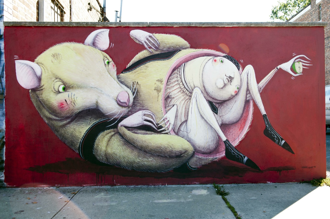 As usual with the Italian street artist, he painted some of his signature characters which can be seen on 27th between Ave U and Gravesend. Right around the corner from Phlemg’s wall.