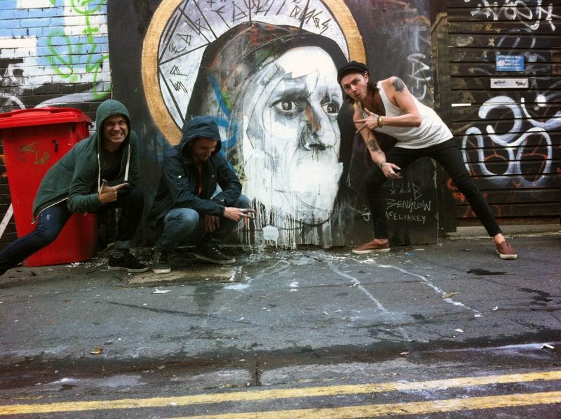 The newly formed trio joined forces to paint this interesting portrait featuring each artist’s distinctive style.