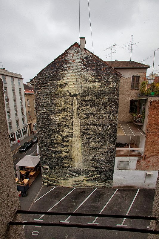 It only took 2 long days for the Croatian street artist to paint this fantastic and rather unusual “landscape” mural. Artist’s idea was to create a peaceful image in the city center, that would hopefully cheer up the by passers and he succeeded by creating this impressive image.