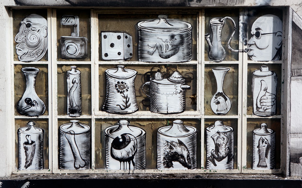 After two dope solo pieces in Wales (covered), Phlegm also collaborated with Run for the Empty Walls Street Art Festival 2013.