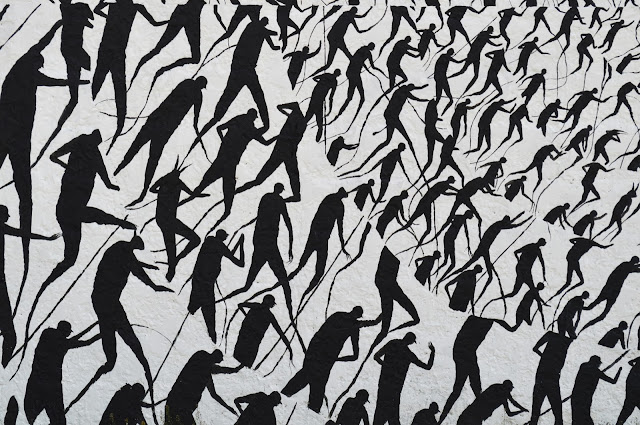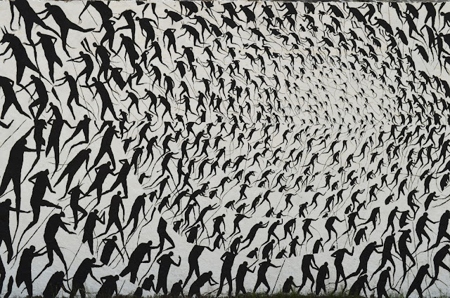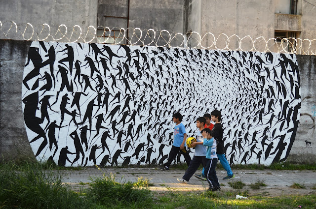 Painted somewhere on the streets of Montevideo, the Spanish artist dropped one of his monochrome pieces composed by an army of characters.