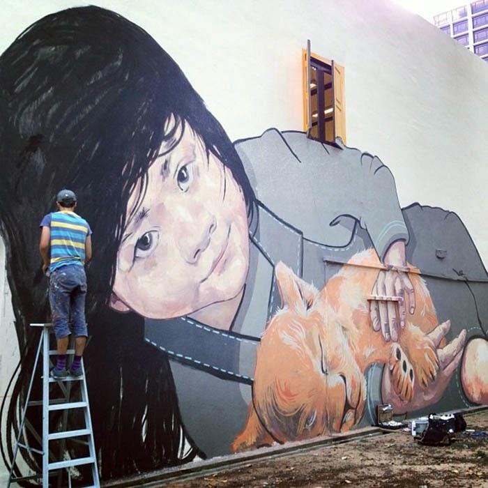 As usual with the Lithuanian Artist, he dropped a batch of brilliant pieces featuring several young children. On a side note, it’s quite rare to see Street Art coming from Singapore due to the very severe punishment for graffiti and urban art.