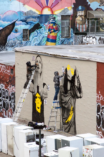 Here comes the completed mural by Angelina Christina and Fin DAC in Williamsburg, Brooklyn, New York City. This beautiful piece of work entitled “The Velveteens” is dedicated to the memory of a New York celebrity and Rock and Roll hero, Lou Reed!