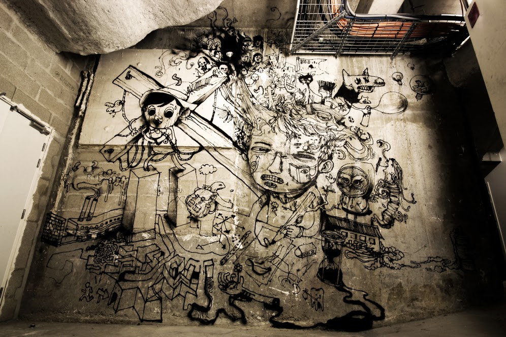 While we last heard from him last summer 2012 (covered), Dran is finally active again with this new indoor piece which was recently completed in Paris, France.