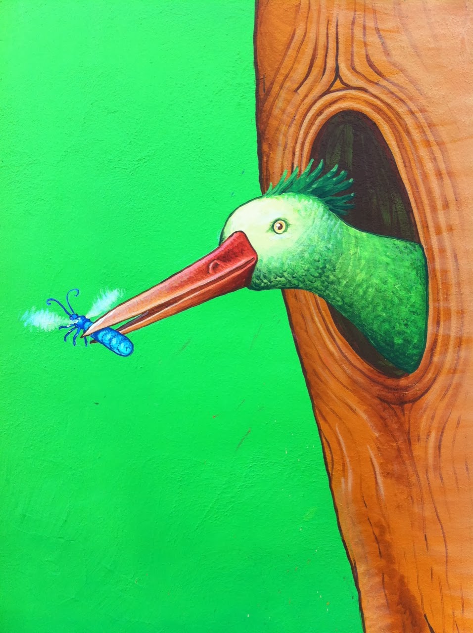 As usual with the two Street Artists, the end product is a superb and colourful new piece inspired by their recurring themes such as nature, science or cosmology. AEC is now in Puerto Rico working on a new mural for Los Muros Hablan.