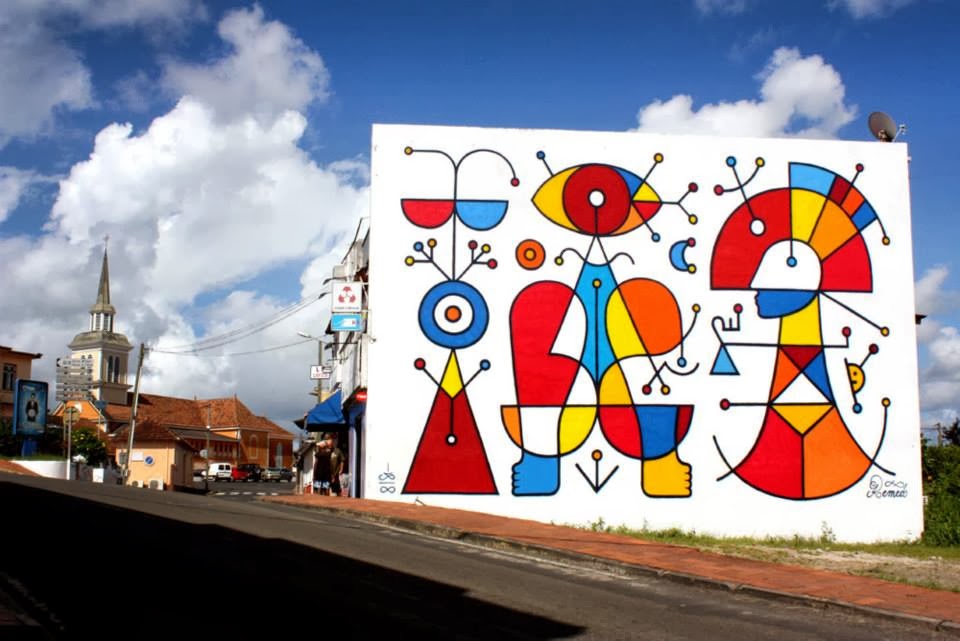 Guillaume Alby aka Remed is now in Martinique where he just finished working on this new piece entitled “Cyclops, Frog Woman, Astronaut”.
