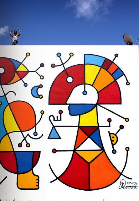 Remed has a way with mixing styles from past and present, and when he paints a mural there is no confusion to who is responsible. Not one to cover an entire wall in paint, his minimalist approach is just as effective. This piece was inspired by pre-Columbian Petroglyphes from the carribean islands.