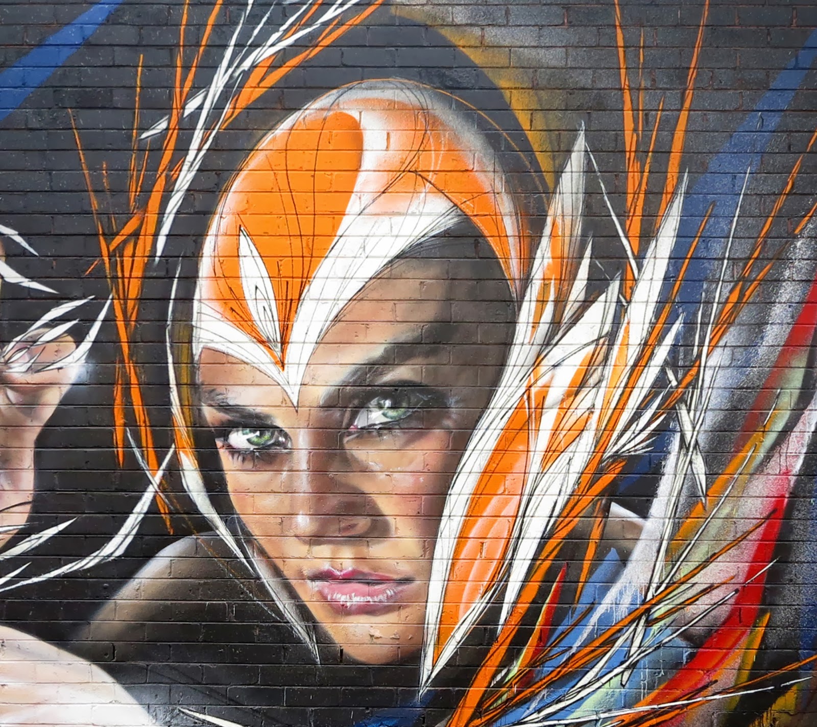 Invited by the Wonder Walls Festival, the Australian duo quickly painted this beautiful new piece featuring Shida’s feathery abstractions combined with Adnate’s portraiture.