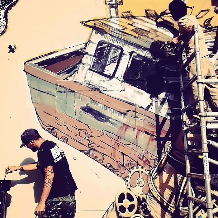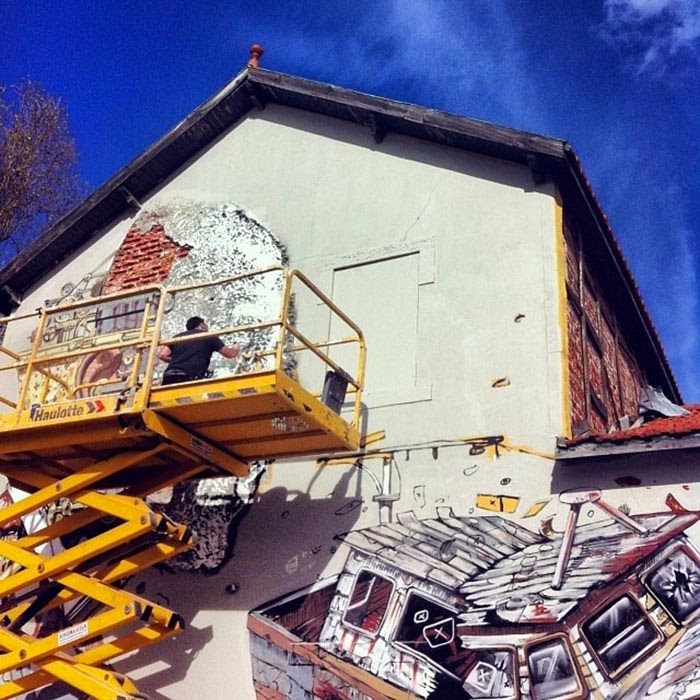 After a massive piece last week (covered), Pixel Pancho is still in Lisbon, Portugal where he spent the last four days working on this new piece with Vhils.