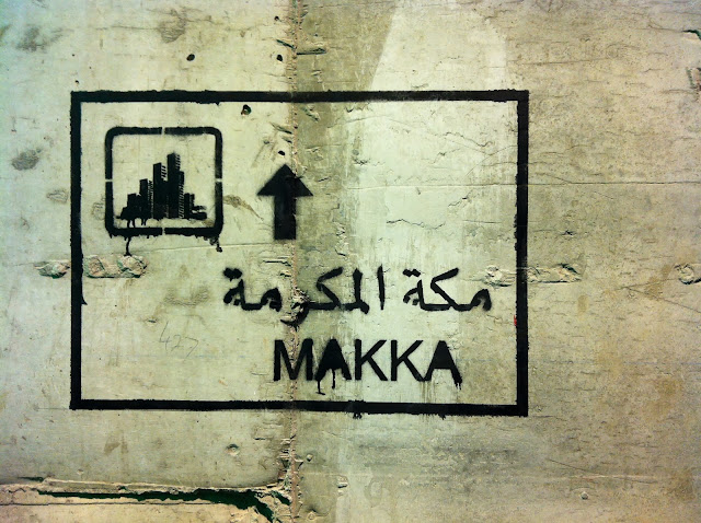 It’s interesting to note that both Afghan artists chose to depict the same subjects in the similar color palettes, but expressed them in different ways. Shamshia’s burqa women are represented in a more positive light, while Malina opted for a darker portrayal of women in Afghan society. Saudia Arabia is another unlikely country to see women expressing their creativity on the streets. In comes Sarah Al Abdali, a 22-year-old woman branded as one of Saudi’s first street artists. Sarah first came into the scene with her stencils, which were placed around Jeddah commenting on the urbanization of the holy city of Mecca.