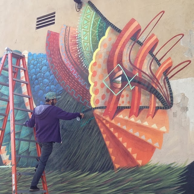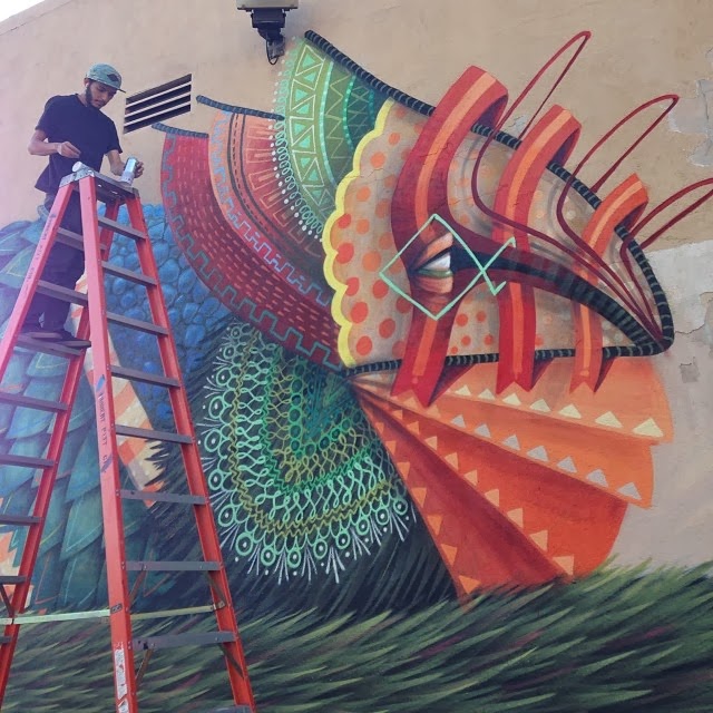 In town for a show at Thinkspace Gallery, the newly formed duo quickly painted this amazing new piece which is featuring each artist’s unique creatures. This project was made possible thanks to Branded Arts.