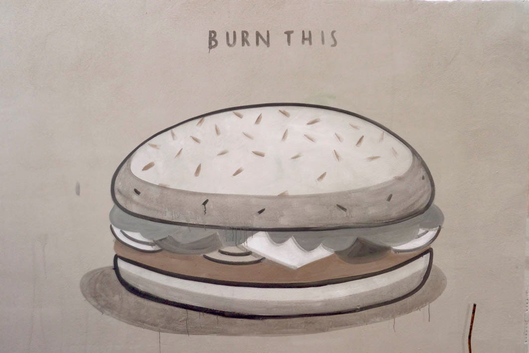 Winter doesn’t seem to stop Escif from painting on the streets of his hometown, Valencia, where he just wrapped up this series of pieces entitled “Fast Food Is Not A Crime”.