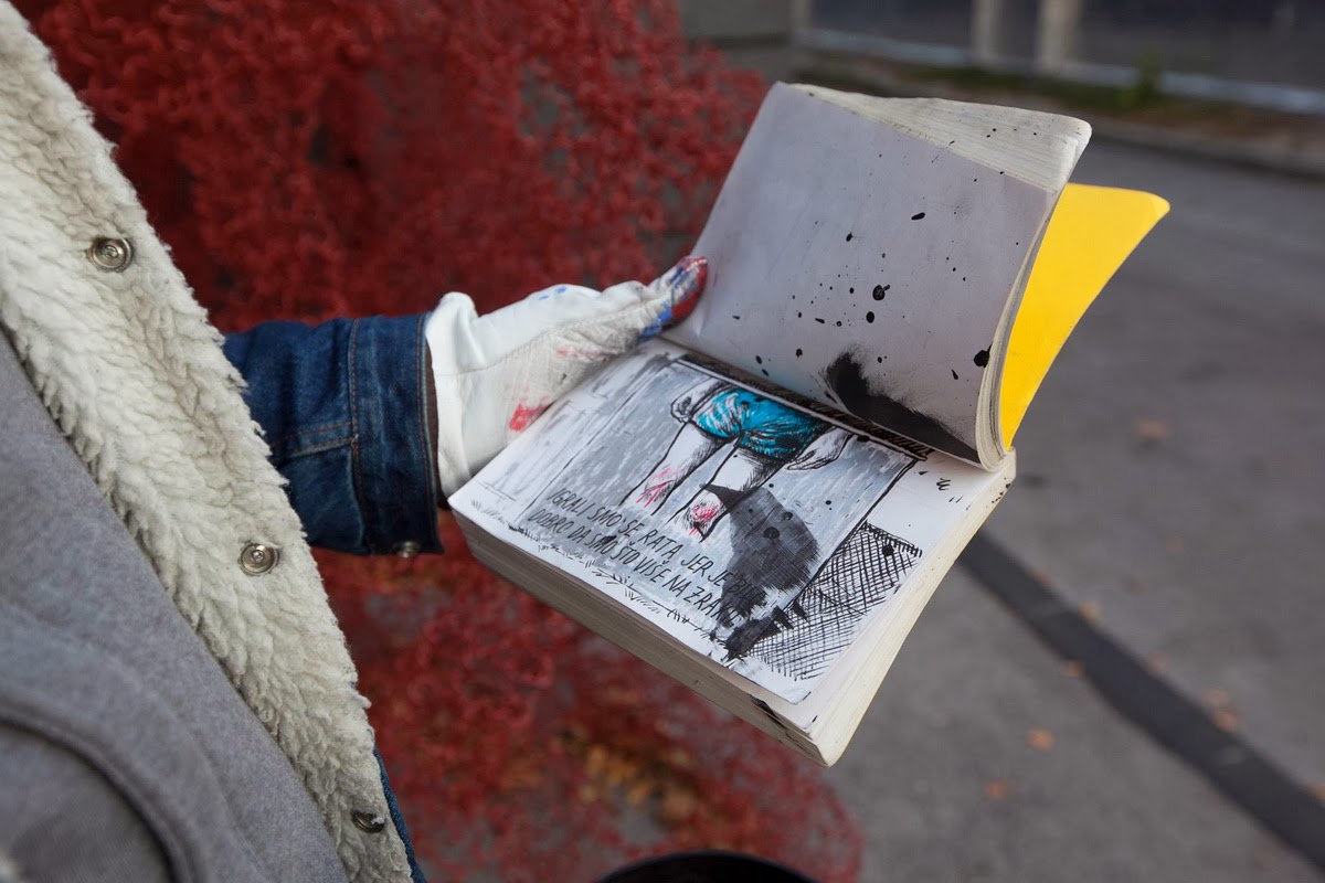 Signifying innocent childhood during which kids games were often a copy of real life moments, especially in war torn Croatia during 90s. The text is reading “We played war because it was healthy that we’re as much in the open space..” which is a witty observation on the irony of life. The piece can be seen outside Lauba building, at Prilaz baruna Filipovica 23, Zagreb.