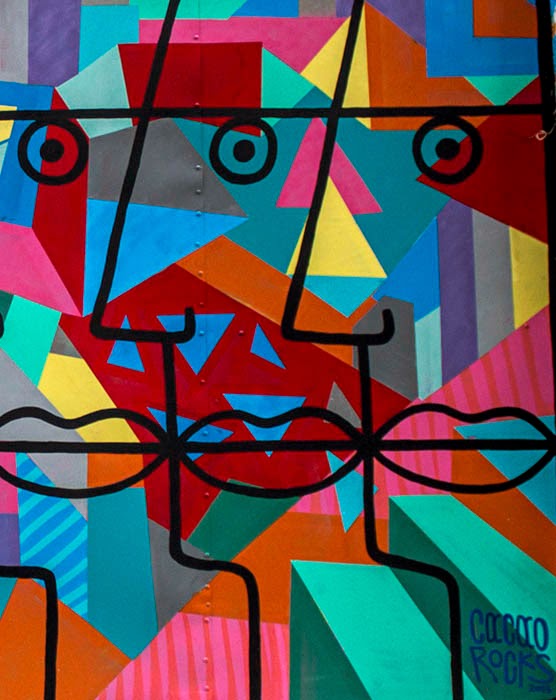 Not much info is known about this up and coming Greek street artist, but his style is often reminiscing of Primitivism and Cubism.