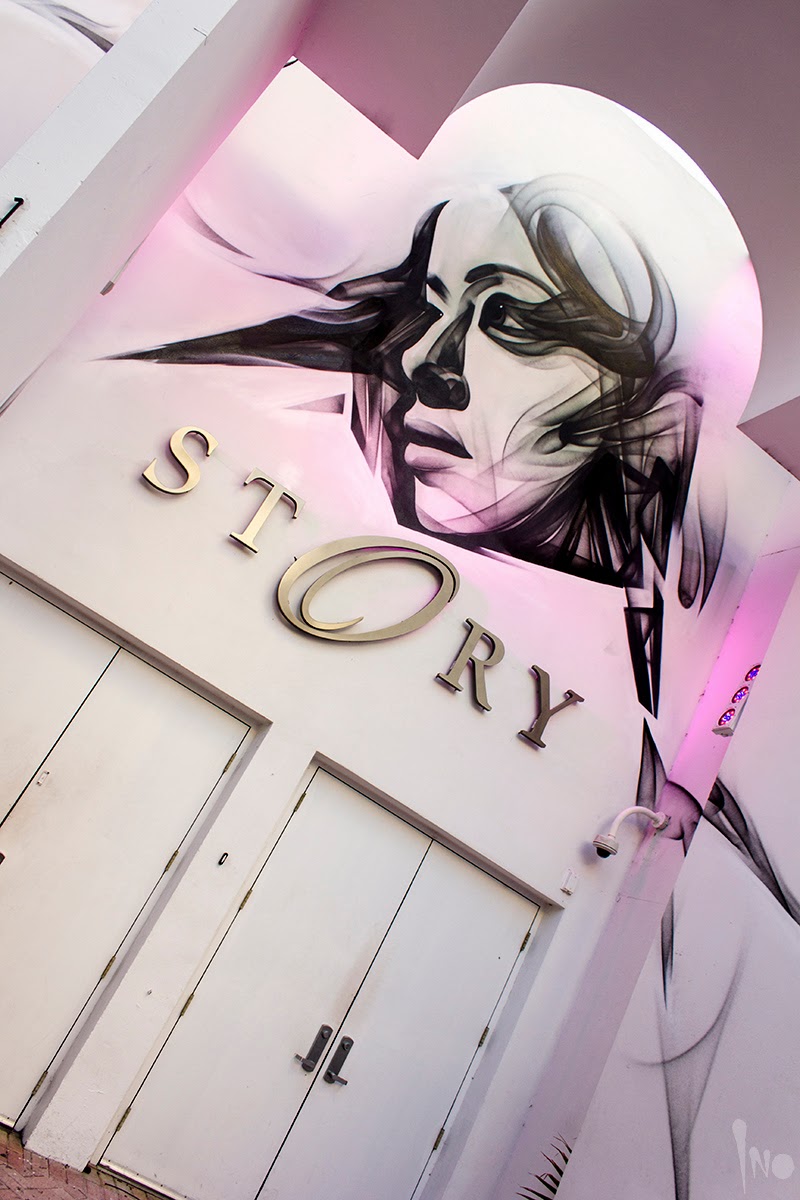 While he’s about to finish a massive new mural in Greece (pics coming soon), iNO also stopped by the Story night club in Miami Beach where he quickly painted this signature piece.