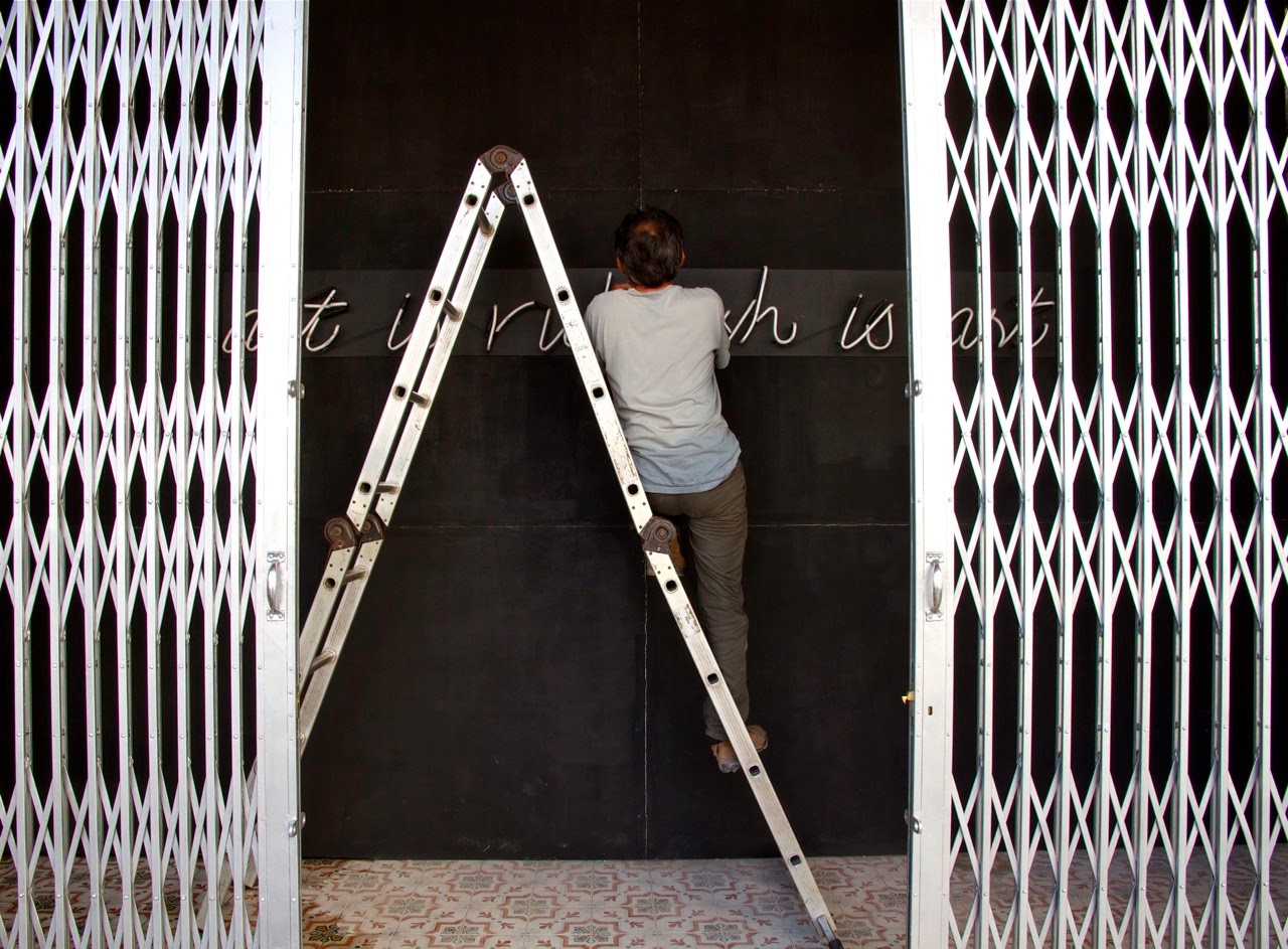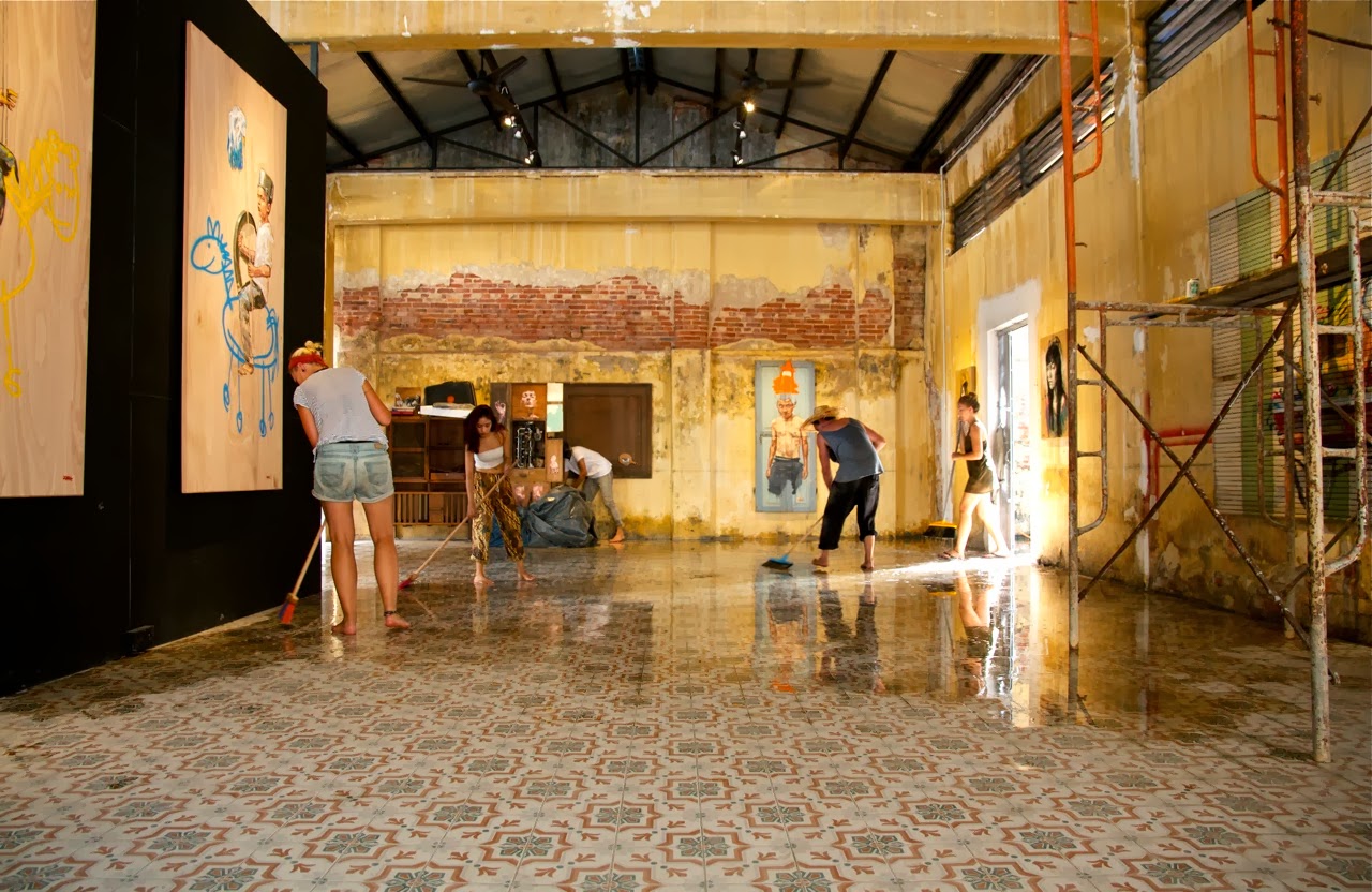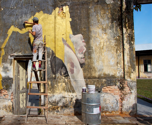 Our friend Henrik Haven has the had opportunity to follow Ernest since last Friday while he created some of the new paintings, murals and installations for his first solo show ever “Art Is Rubbish Is Art” which will be opening on Friday January 17th in Penang, Malaysia.