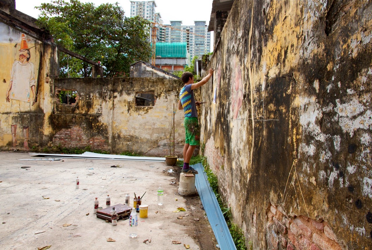 After travelling around the globe these last few months, Ernest Zacharevic is finally back in Penang where he spent the last few weeks working on a series of new projects.