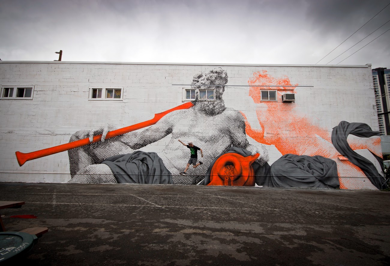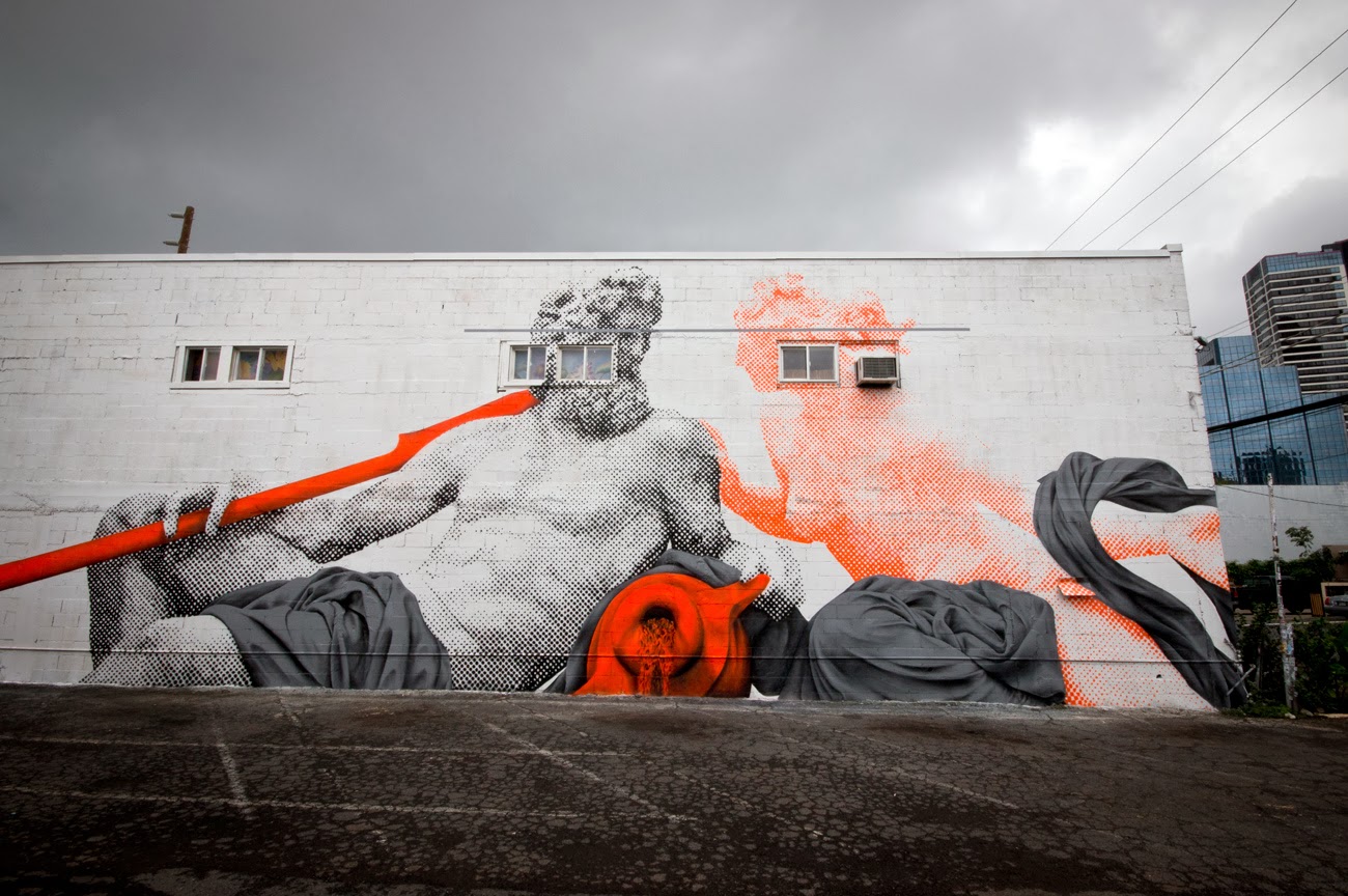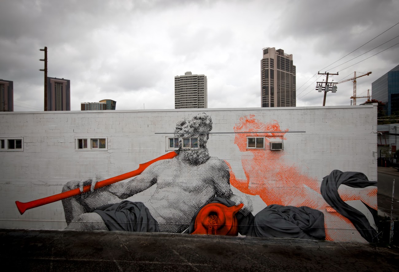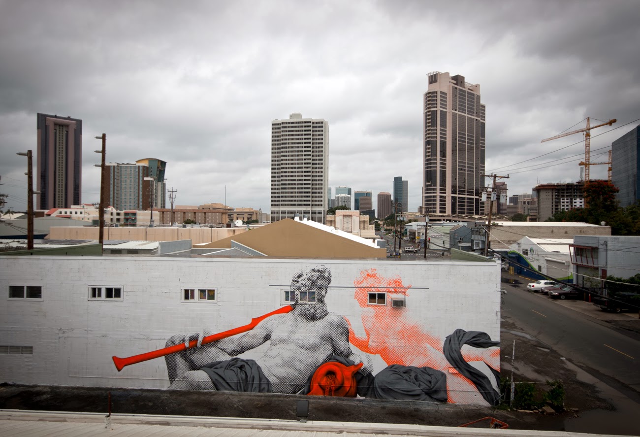 In town for the always excellent POW! WOW! Hawaii Street Art Festival, the American duo quickly painted some of their signature imagery for the locals to enjoy.